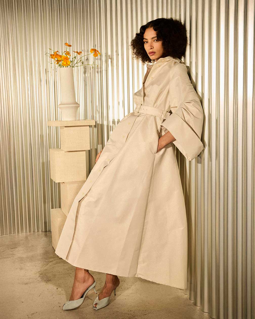 Shaped with intention to follow the body’s natural contours, each pleat breathes with a contrast of precision and ease. The garment becomes a vessel of movement and emotion, where structure softens into poetry in motion. In this delicate balance, masterful craftsmanship unfolds as quiet artistry.