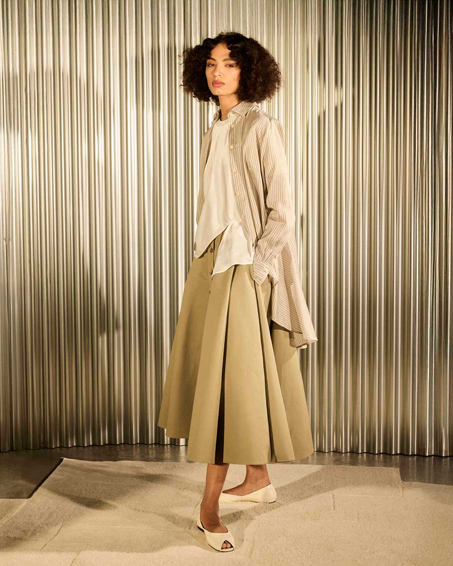 This family of design is defined by clever patterning on bias cuts, crafted from a single piece of fabric. Designed to move with the body, they offer ease and fluidity without losing precision. Each garment embodies effortless motion, bringing quiet elegance to the everyday.