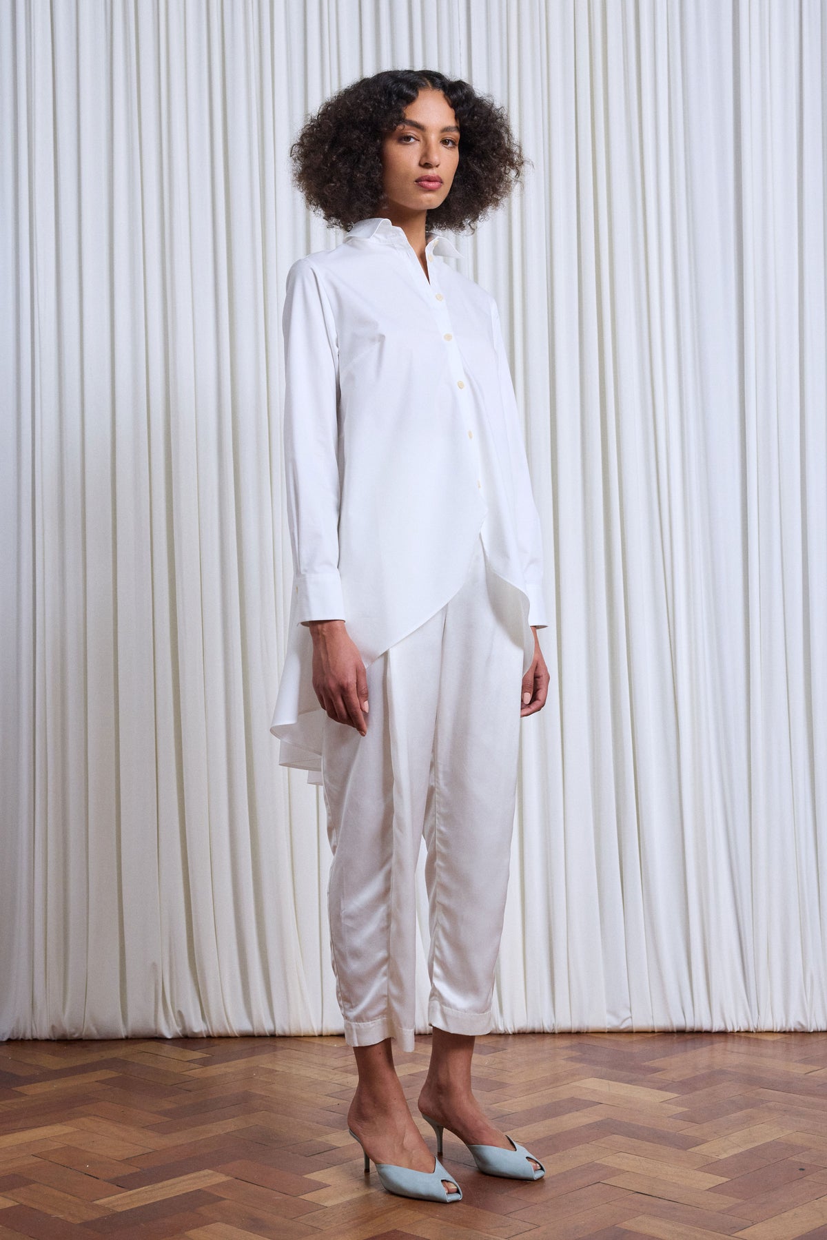 Defined by fluidity and a relaxed sense of style, allowing effortless movement in the world around her. These pieces encompass a sense of ease and momentum, while subtle details anchor each piece with quiet consideration. Designed for a woman in motion, these garments balance comfort with refined intention, turning everyday dressing into a graceful dance.